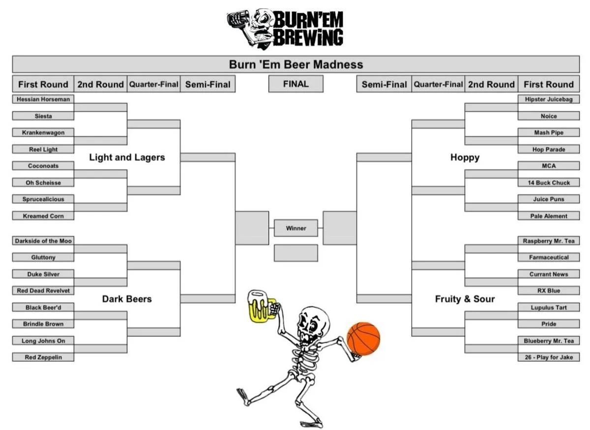 We wanted to give a special shout out to Michigan City’s own Burn ‘Em Brewing who have been doing something really fun for this year’s March Madness tournament: a “Beer Madness” tournament!