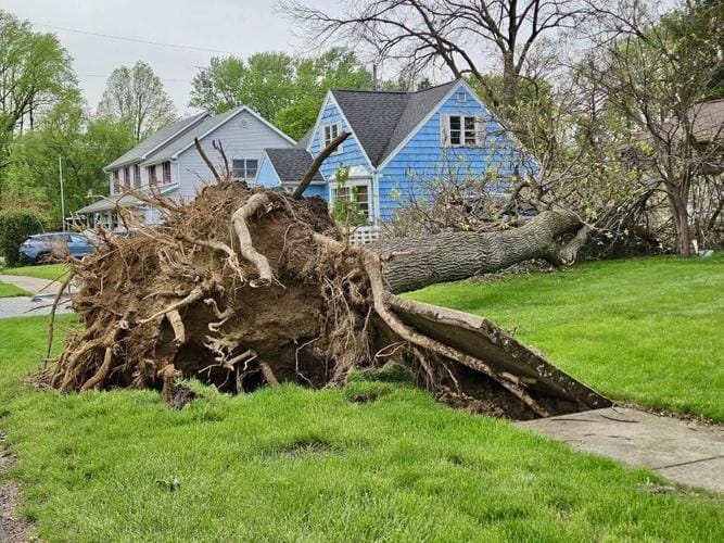 A fully uprooted tree in a Chesterton neighborhood, where 70 mph wind gusts caused a lot of damage to trees and power lines.