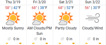 Lastly, let’s get into your weekend weather forecast for the weekend of 3/19/26. Looks like we’re going to have some nice weather this weekend, so enjoy it before some crazy stuff starts happening again.